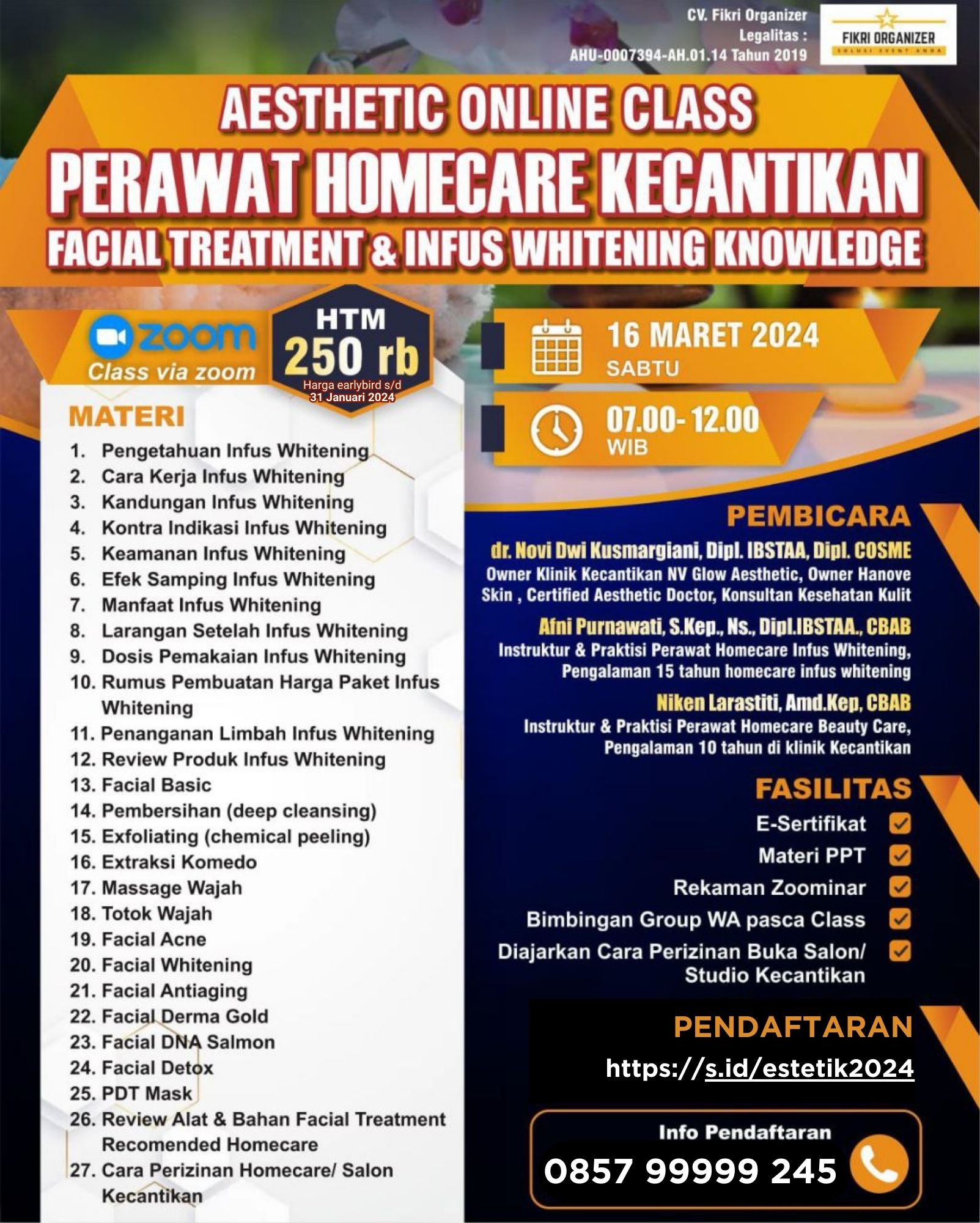 Class Online Perawat Homecare Estetika Facial Treatment & Infus Whitening Knowledge