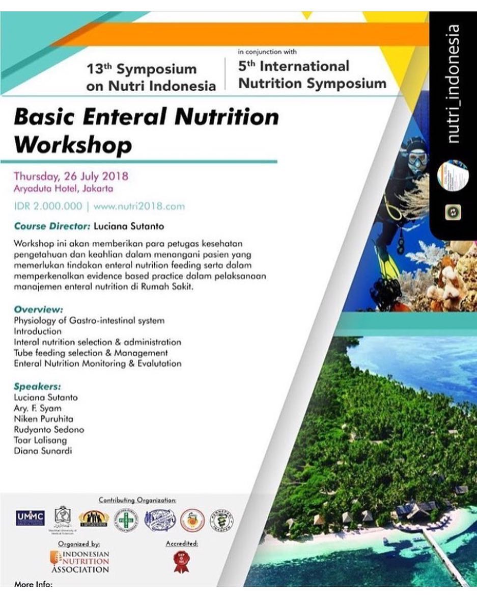 Workshop ini akan memberi pengetahuan dan keahlian mengenai pasien yang memerlukan tindakan enteral nutrition kepada para petugas kesehatan