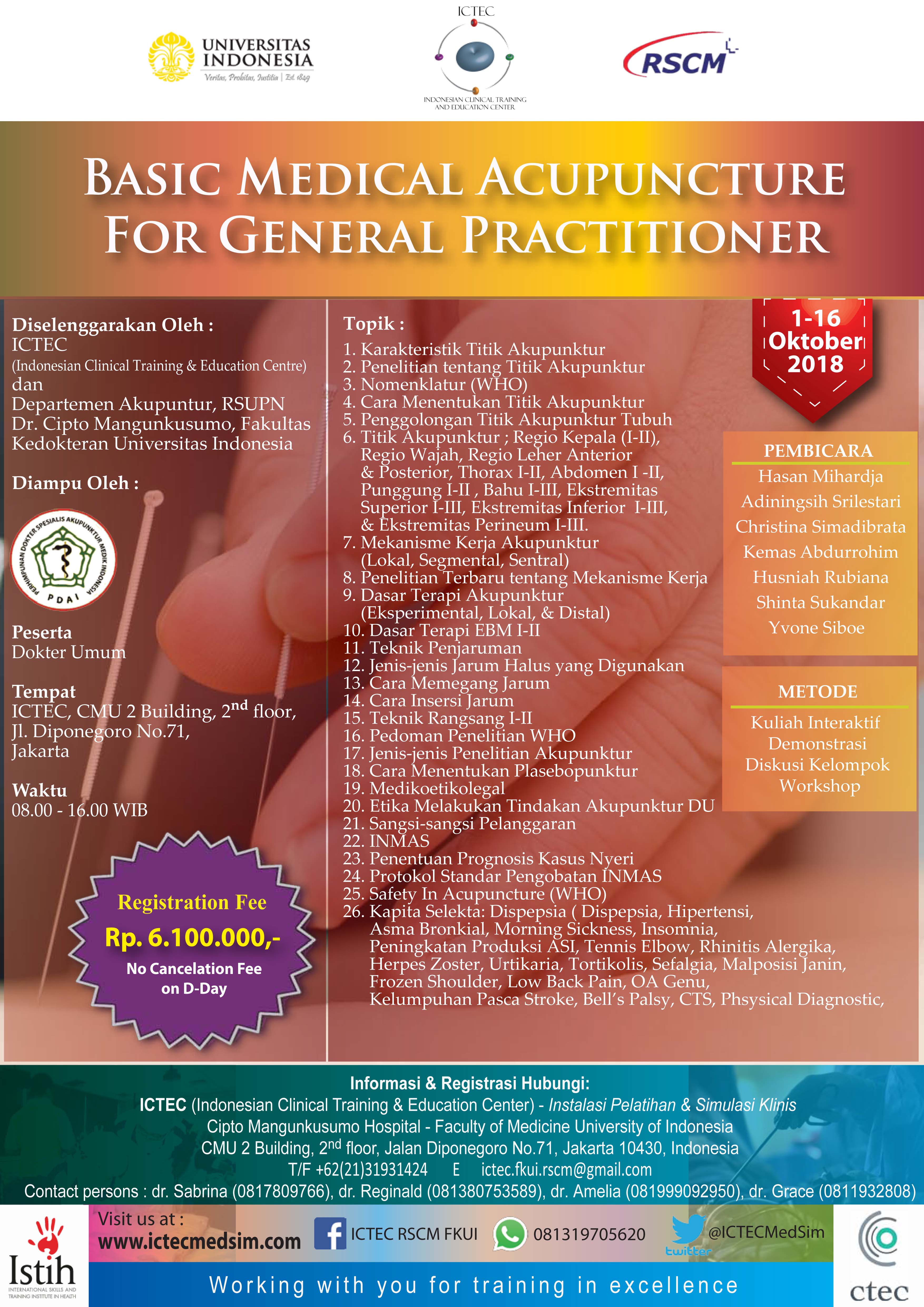 ICTEC FKUI RSCM in conjunction with Medical Acupuncture Cipto Mangunkusumo Hospital/Faculty of Medicine University of Indonesia Proudly Present :