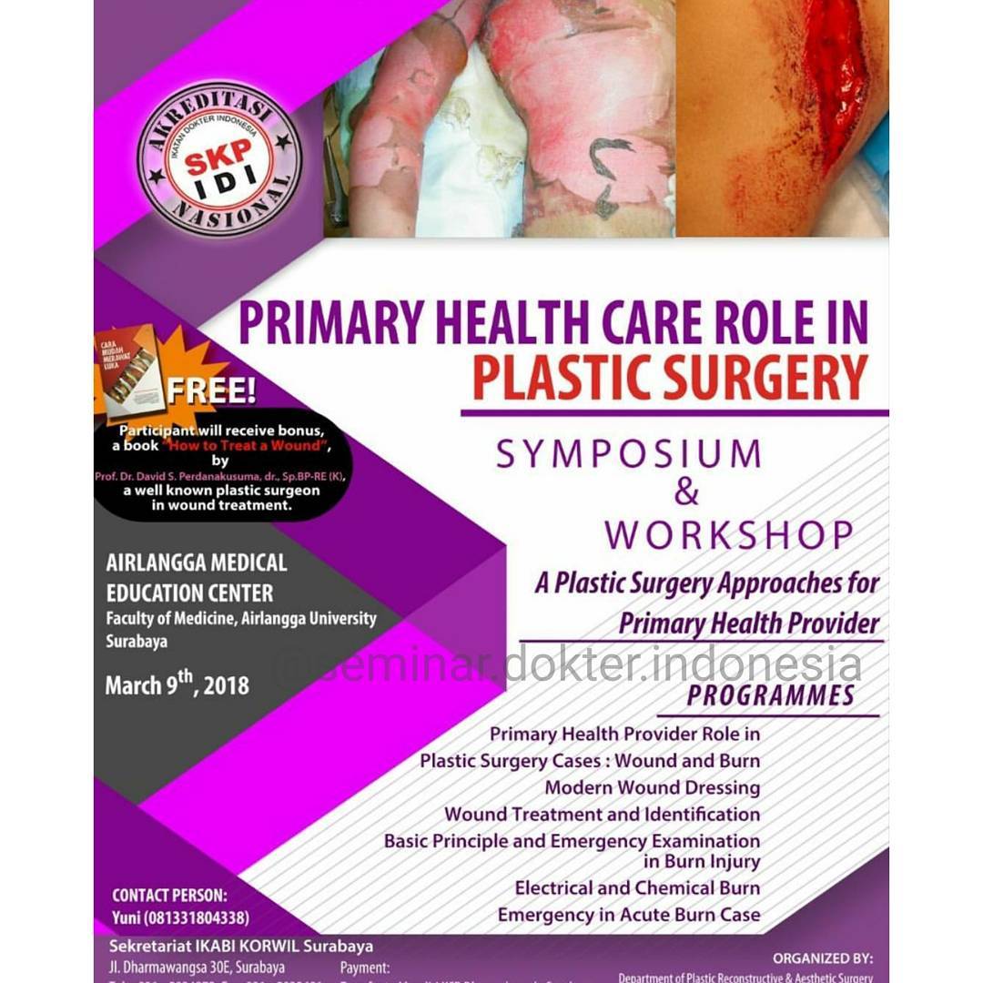 Simposium dan Workshop Primary Health Care Role in Plastic Surgery akan dilaksanakan pada 9 Maret 2018 di Airlangga Medical Education Center.