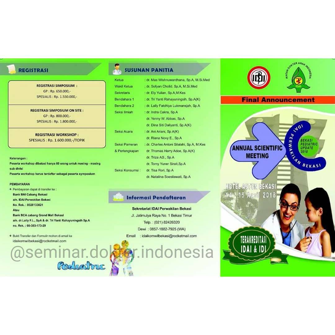 Annual Scientific Meeting IDAI Perwakilan Bekasi bertema Bekasi Pediatric Update 2018 akan diselenggarakan pada 14 - 15 April 2018 di Hotel Aston Bekasi