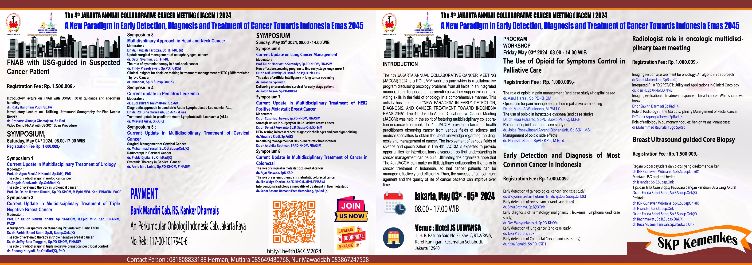 POI JAYA mengajak kepada rekan – rekan sejawat untuk bisa bergabung dalam sebuah program kegiatan ilmiah yaitu The 4th Jakarta Annual Collaborative Cancer Meeting ( JACCM ) 2024, Program yang terakreditasi SKP Kemenkes ini akan dilaksanakan pada :
