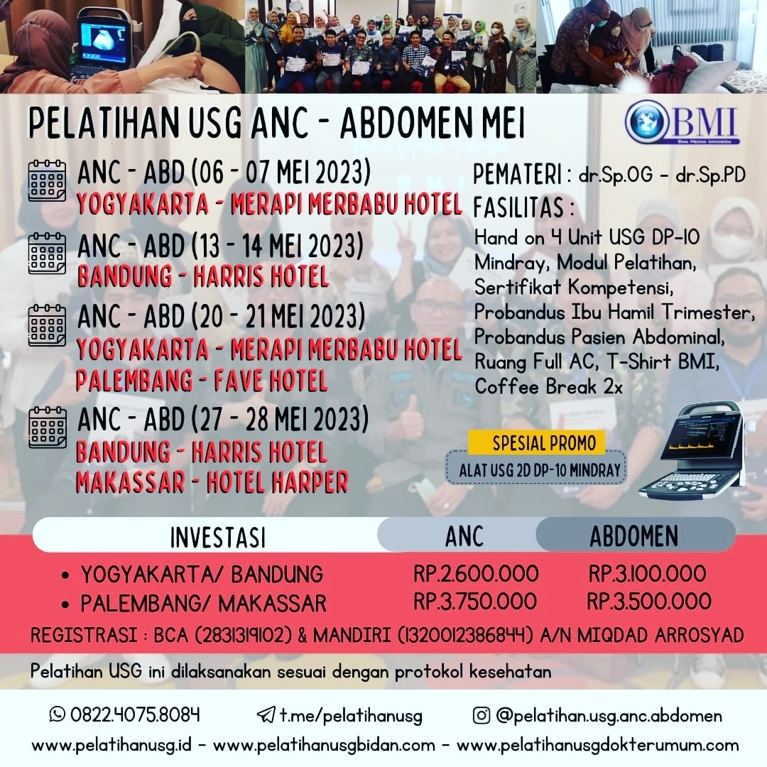 | Pelatihan USG ANC | 2.600.000 (Earlybird) | 2.600.000 (Reguler) |