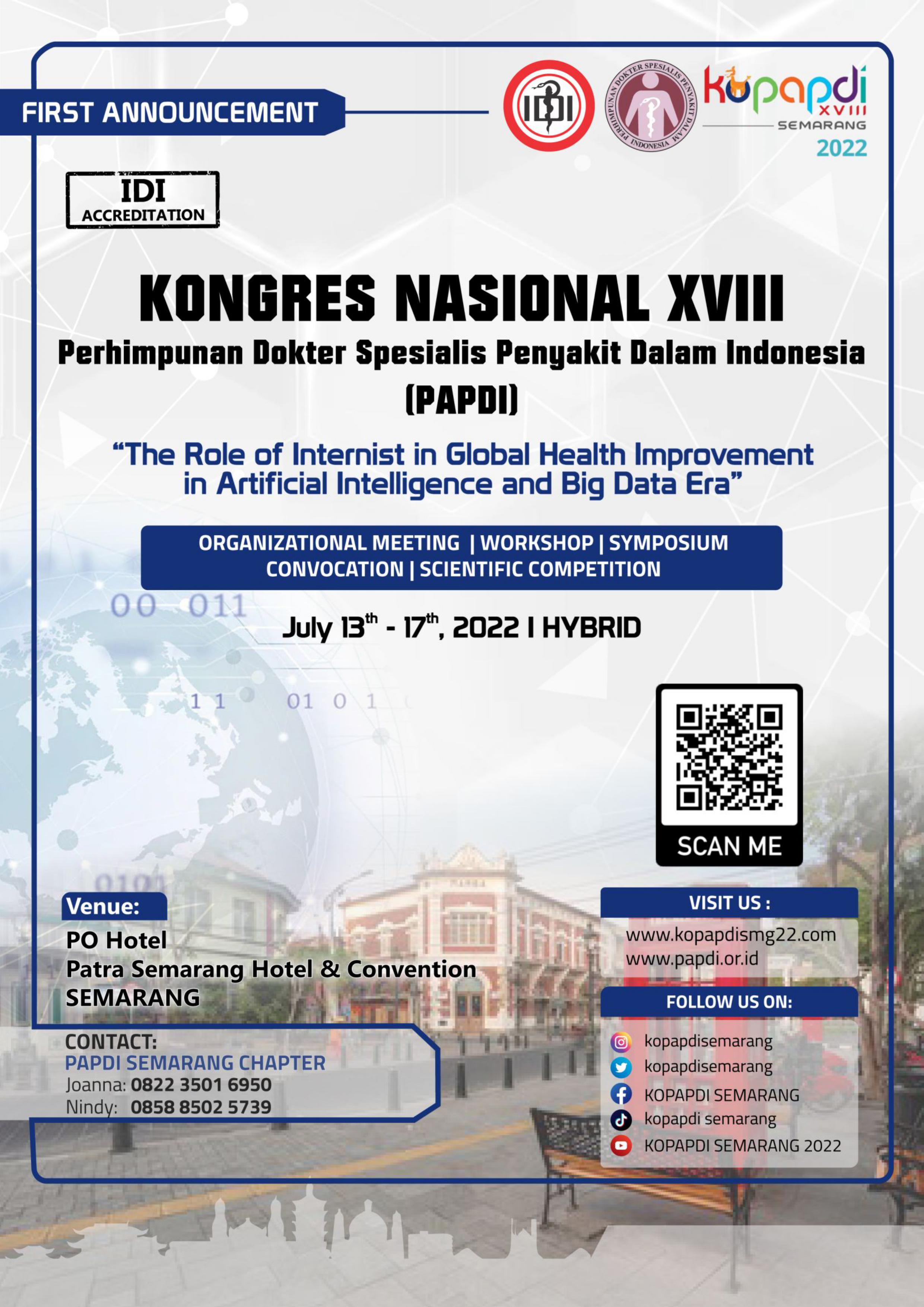 Perhimpunan Dokter Spesialis Penyakit Dalam Indonesia (PAPDI), mengundang Sejawat sekalian dalam kegiatan KONGRES NASIONAL ke-XVIII tahun 2022.