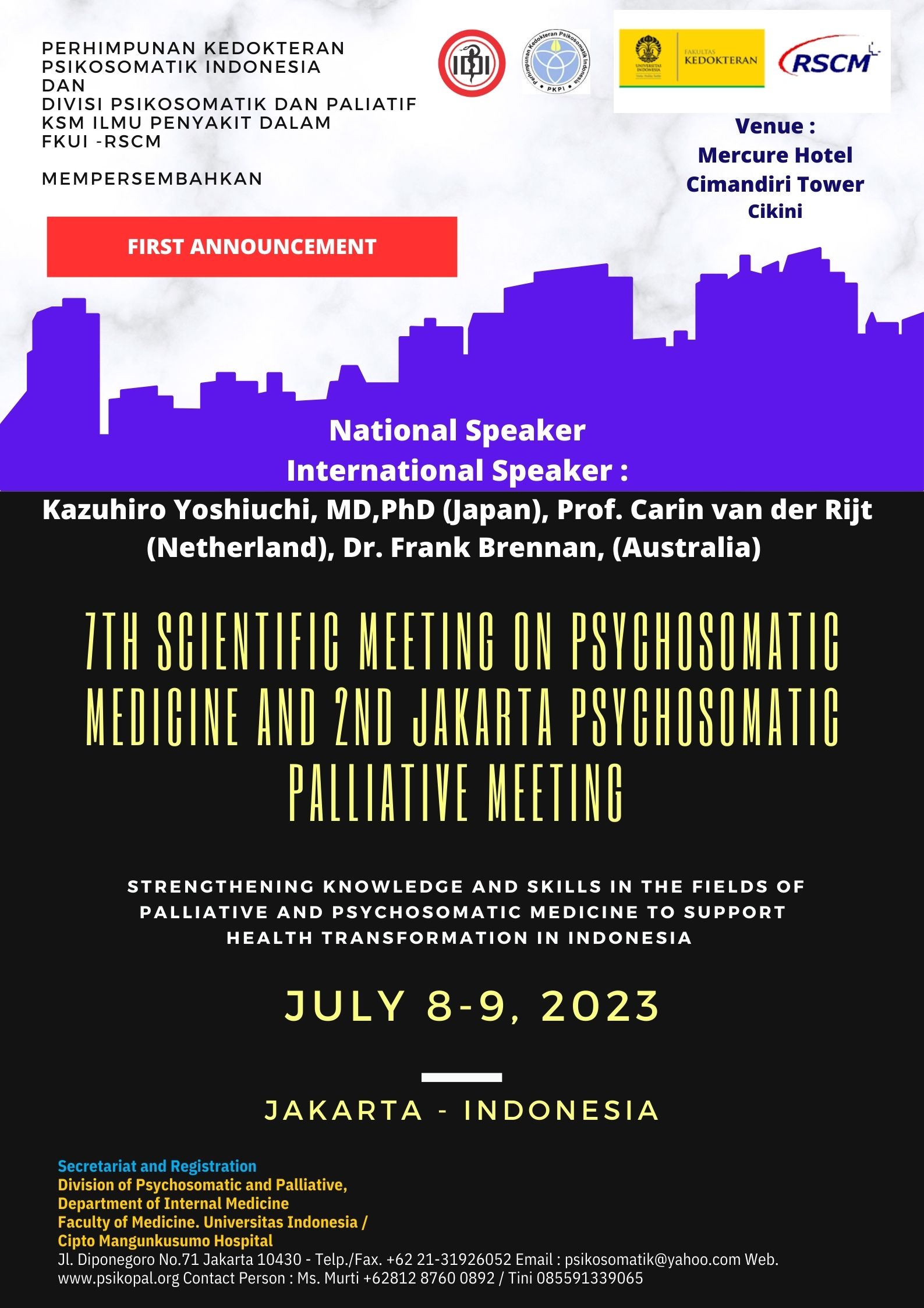 Di Indonesia pandemi Covid-19 mulai mereda dan saat ini pemerintah menggalakkan program transformasi kesehatan. Perhimpunan Kedokteran Psikosomatik Indonesia (PKPI) bekerjasama dengan Divisi Psikosomatik dan Paliatif FK UI – RSCM ingin berbagi informasi dan pengalaman serta berdiskusi dengan para sejawat tentang temuan-temuan ilmiah dan tatalaksana baru di bidang kedokteran psikosomatik dan paliatif serta masalah-masalah klinis yang dijumpai dalam praktek sehari-hari.