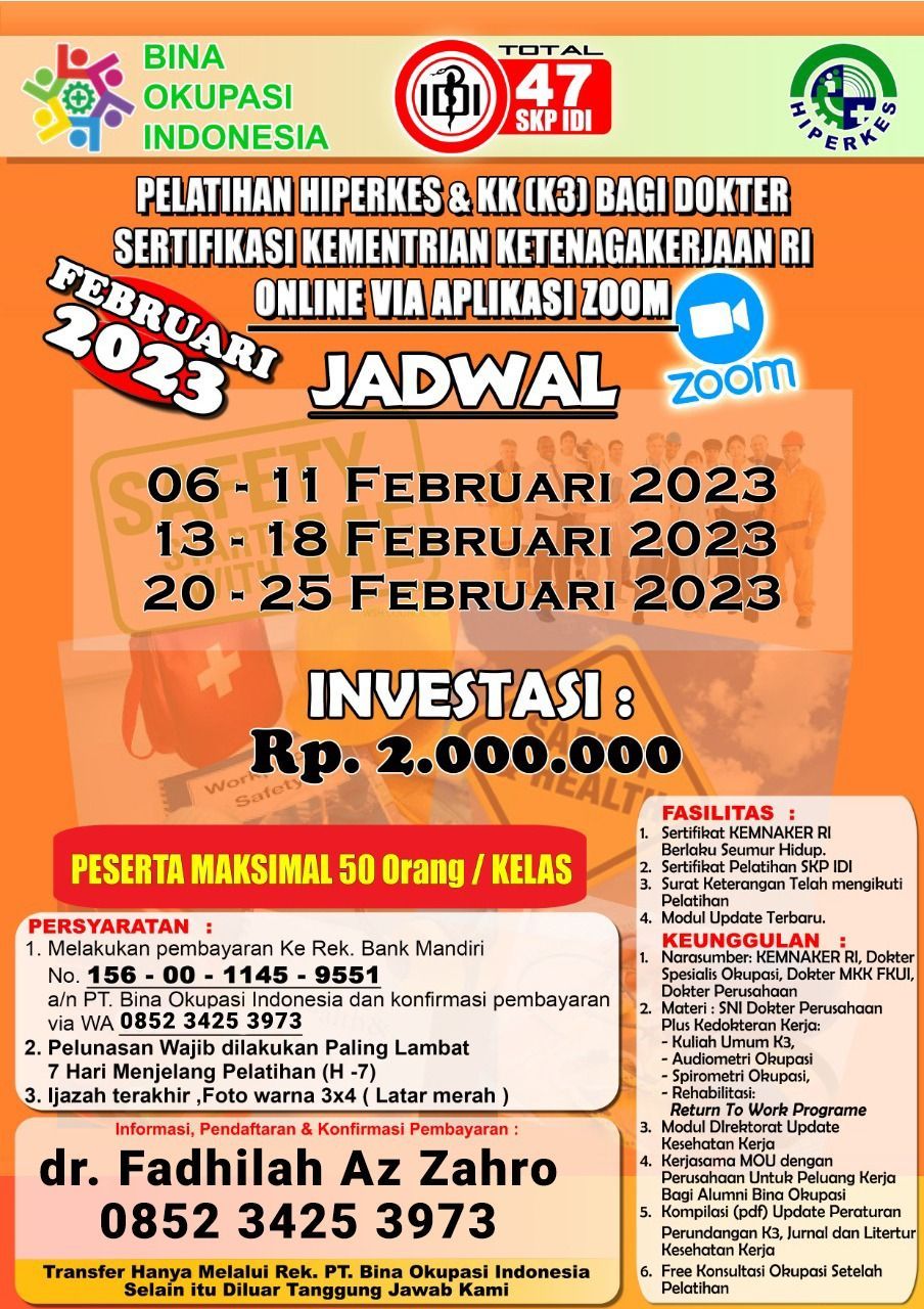 JADWAL TERBARU PELATIHAN HIPERKES 2023 DOKTER & DOKTER GIGI