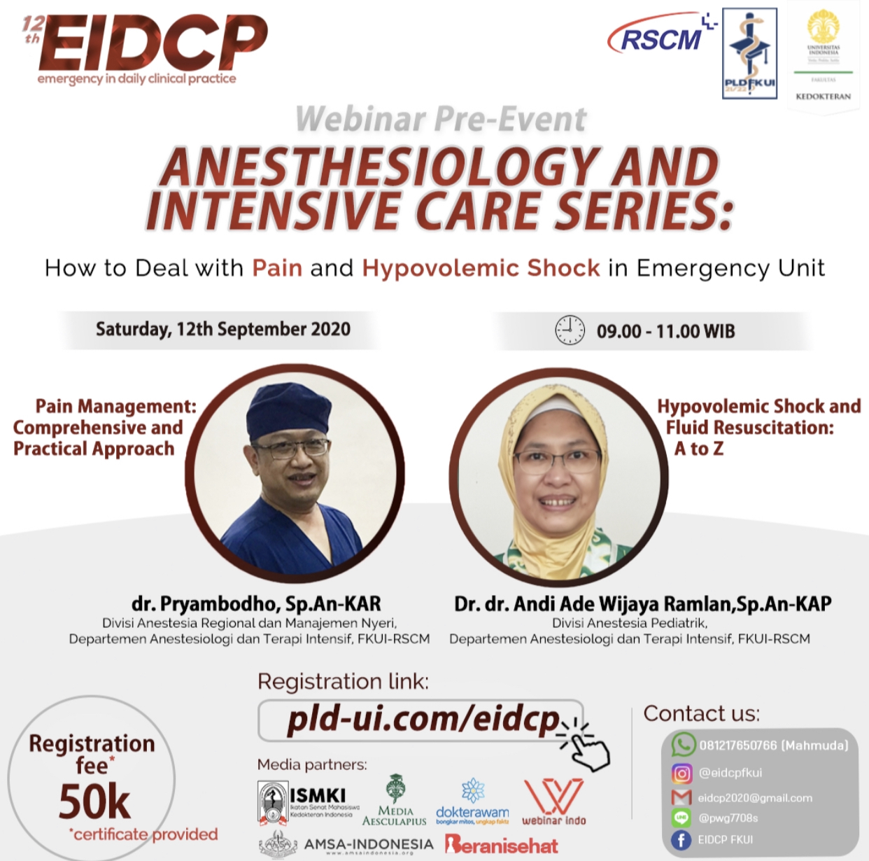 In collaboration with Department of Anesthesiology and Intensive Care FKUI-RSCM, we proudly present to you: EIDCP’s Anesthesiology and Intensive Care Series Webinar. The topics are: