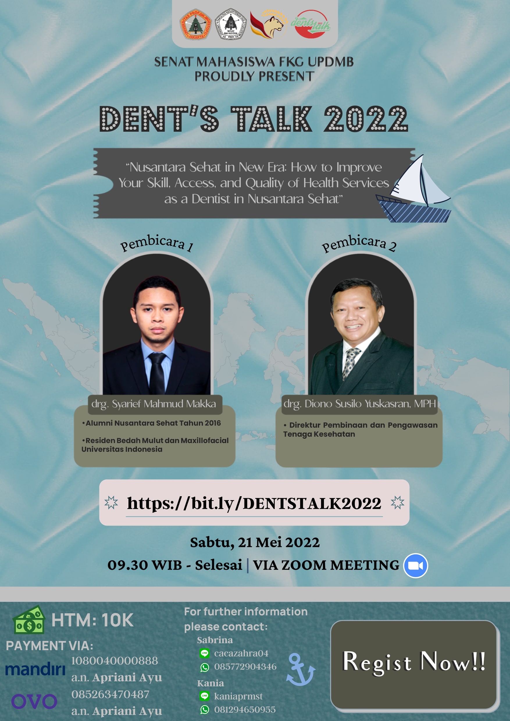 | Umum (Mahasiswa/Dokter/Dokter Gigi) | 10.000 (Earlybird) | 10.000 (Reguler) |