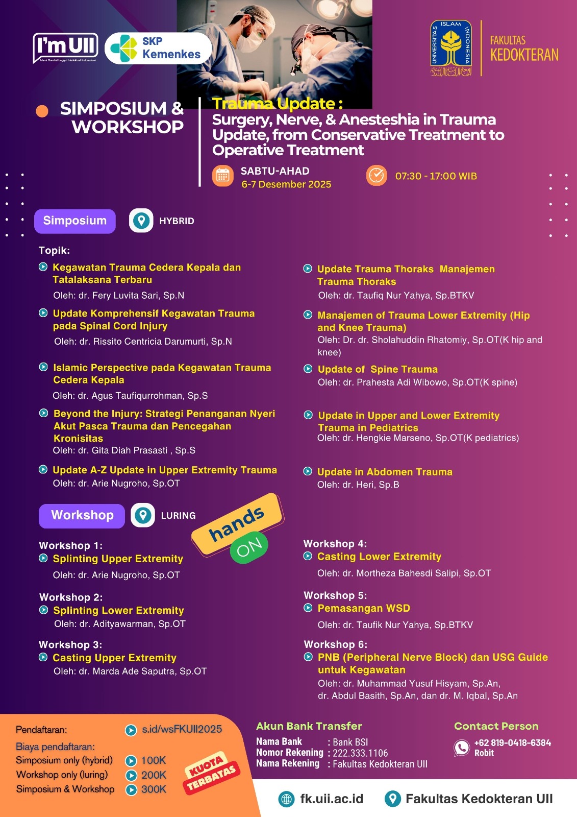 ✅ SIMPOSIUM (HYBRID): Bahas tuntas kegawatan trauma kepala, spinal, thoraks, abdomen, ekstremitas, manajemen nyeri, dan perspektif Islam (Lihat poster untuk topik lengkap!)