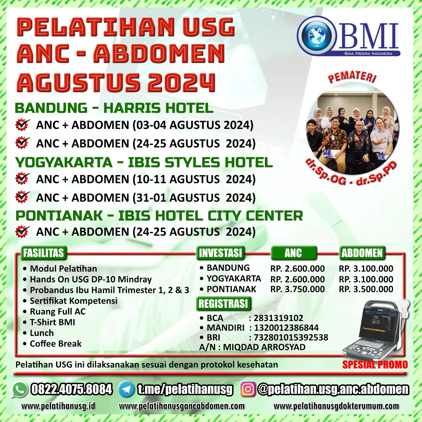 | Pelatihan USG ANC | 2.600.000 (Earlybird) | 2.600.000 (Reguler) |