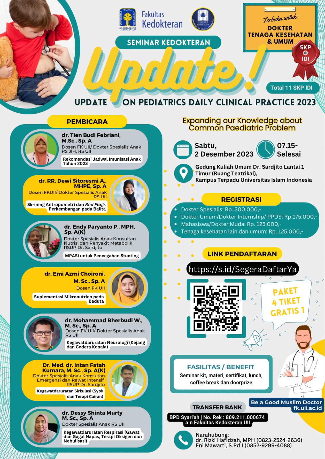mengundang Teman Sejawat sekalian untuk mengikuti Seminar Kedokteran "UPDATE" Update on Pediatrics Daily clinicAl pracTicE 2023