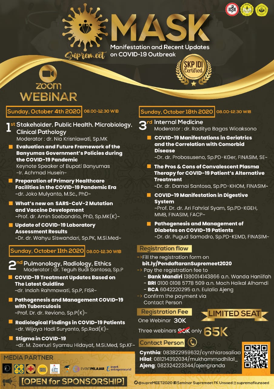 #supreMEET #MASK #FKUnsoed #KBMKUnsoed #SeminarKesehatan #SeminarNasional #SeminarDokter #MahasiswaKedokteran #Purwokerto #WebinarKesehatan #lawancorona