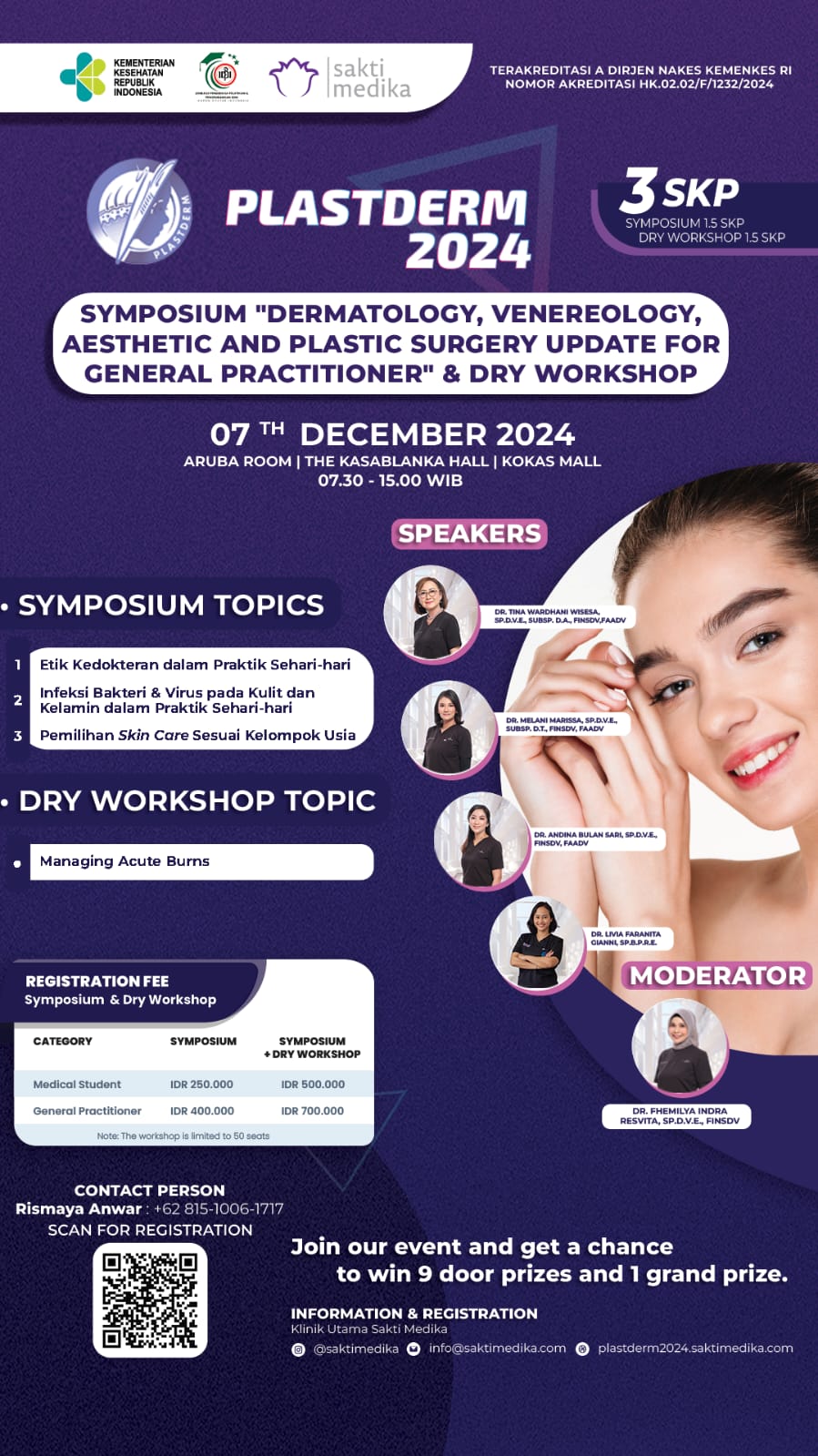 Registrasi sekarang melalui: https://plastderm2024.saktimedika.com/