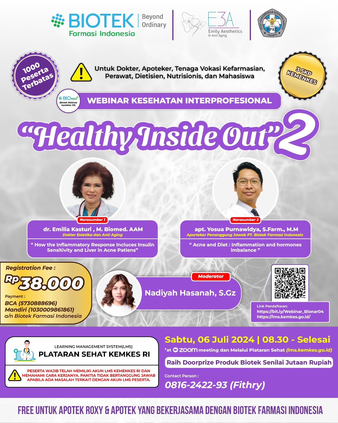 Yuk upgrade ilmu kamu lagi terkait hal ini. Untuk belajar lebih dalam tentang perawatan kulit dan nutrisi untuk perkuat imun sehingga bisa atasi jerawat. Seminar ini akan berlangsung pada: