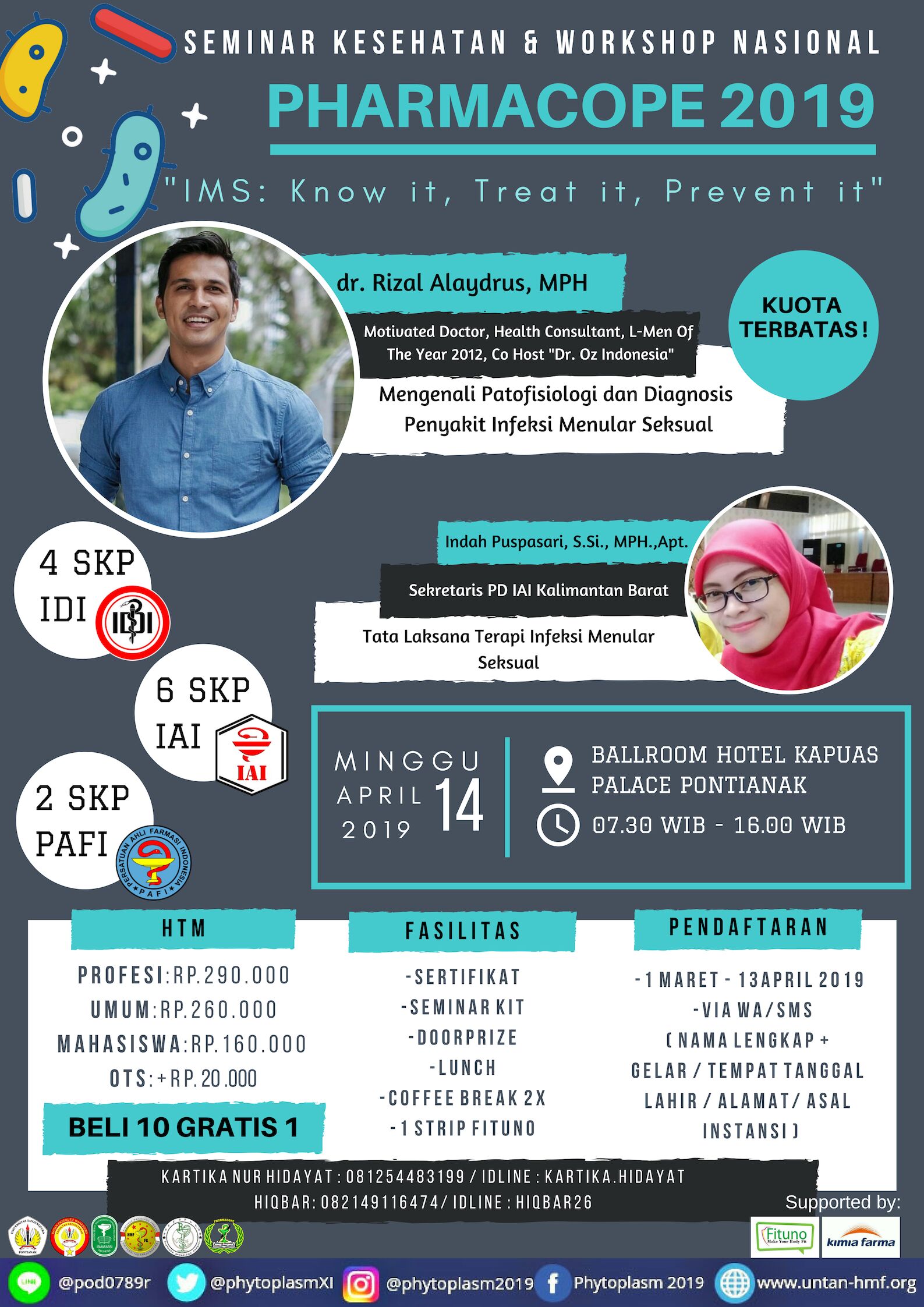 PHYTOPLASM XI memiliki agenda Pharmacope dimana akan diadakan seminar dan workshop Nasional yang setiap tahun diadakan.