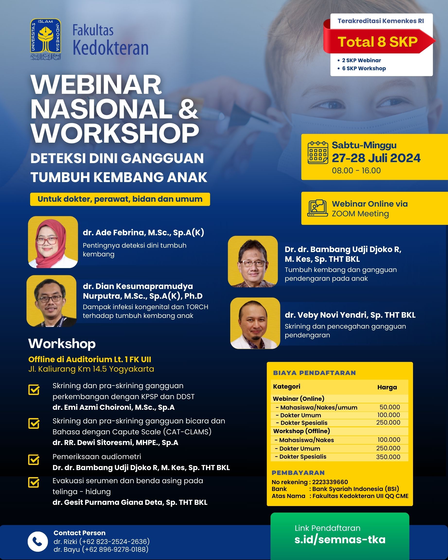 Bergabunglah dengan kami dalam seminar dan workshop ilmu pediatri dan THT yang menarik ini, dan tingkatkan pengetahuan dan keterampilan Bapak/Ibu dalam praktek medis sehari-hari! 💪🏻😁