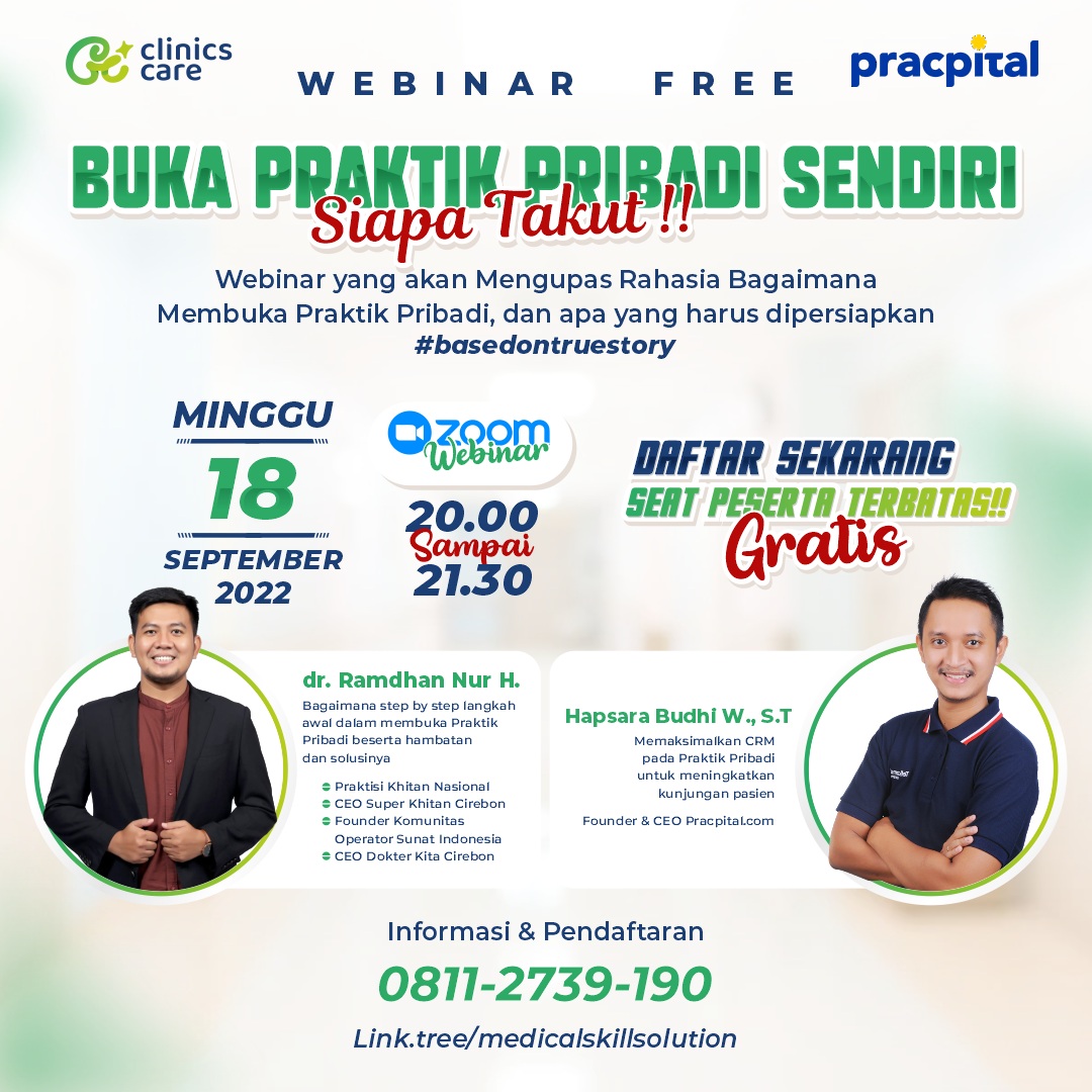 - Hapsara Budi W, S.T. yang akan menyajikan tips dan trik didalam meningkatkan kunjungan pasien di Praktik Pribadi hanya melalui Sebuah Aplikasi Digital.