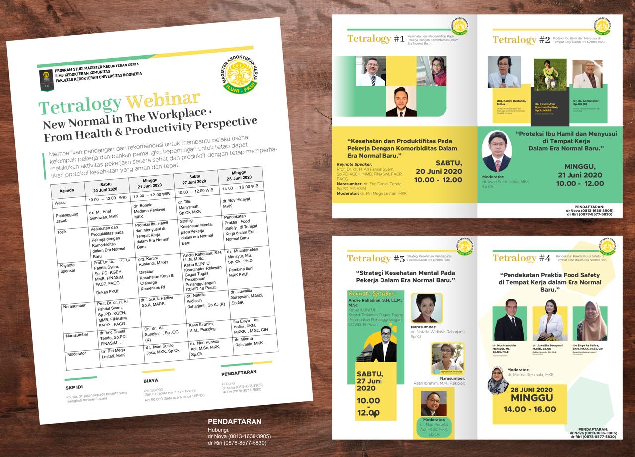 Tetralogy Webinar ILUNI MKK FKUI setiap SABTU dan MINGGU mulai tanggal 20 Juni hingga 28 Juni 2020 dengan tema tema yang tentu saja sangat aplikatif untuk memastikan kesehatan dan produktifitas di tempat kerja.