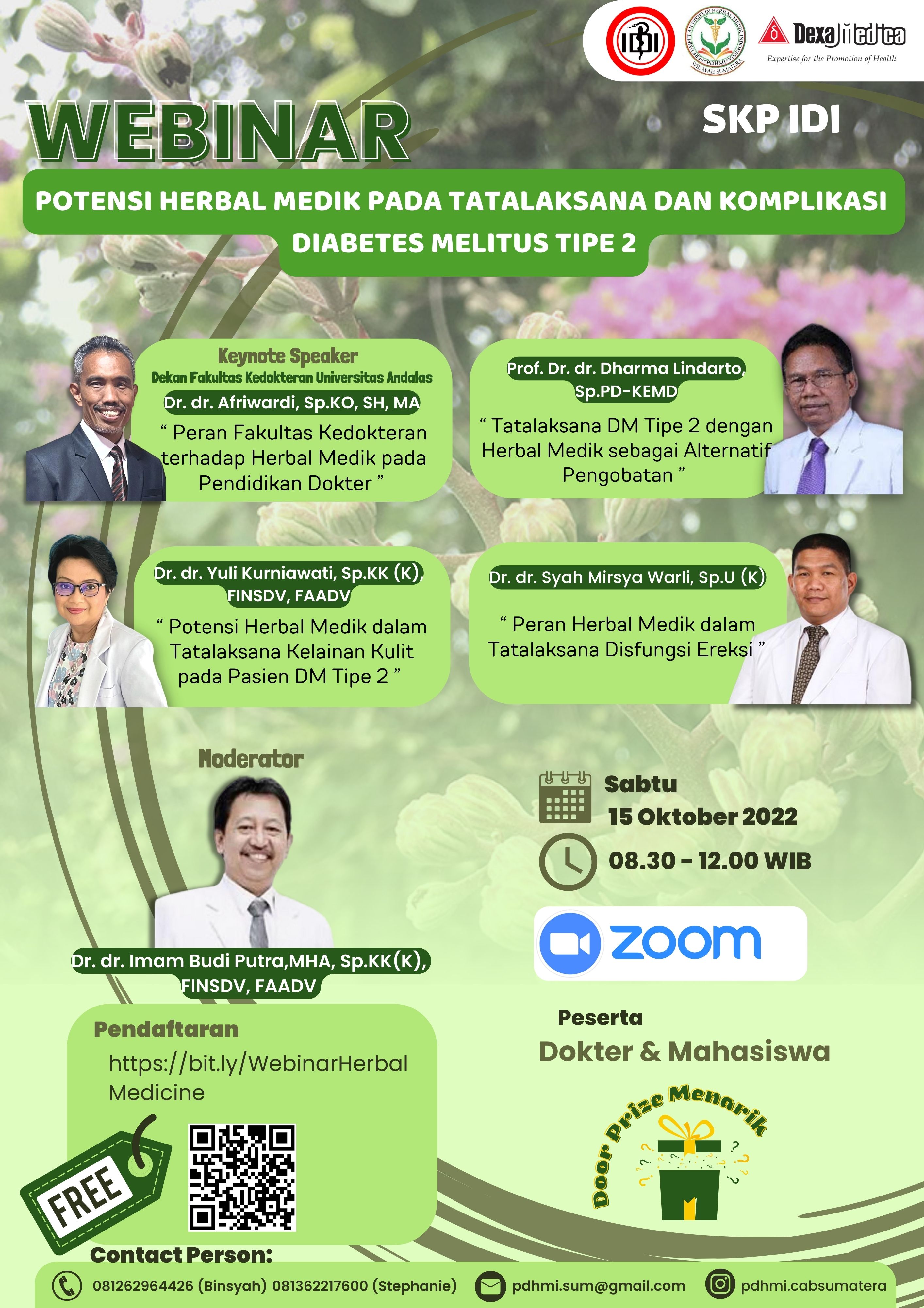 PDHMI cabang Sumatera akan mengupas tuntas mengenai potensi herbal medik yang aman dan bermanfaat bagi kesehatan khususnya pada penyakit DM tipe 2.