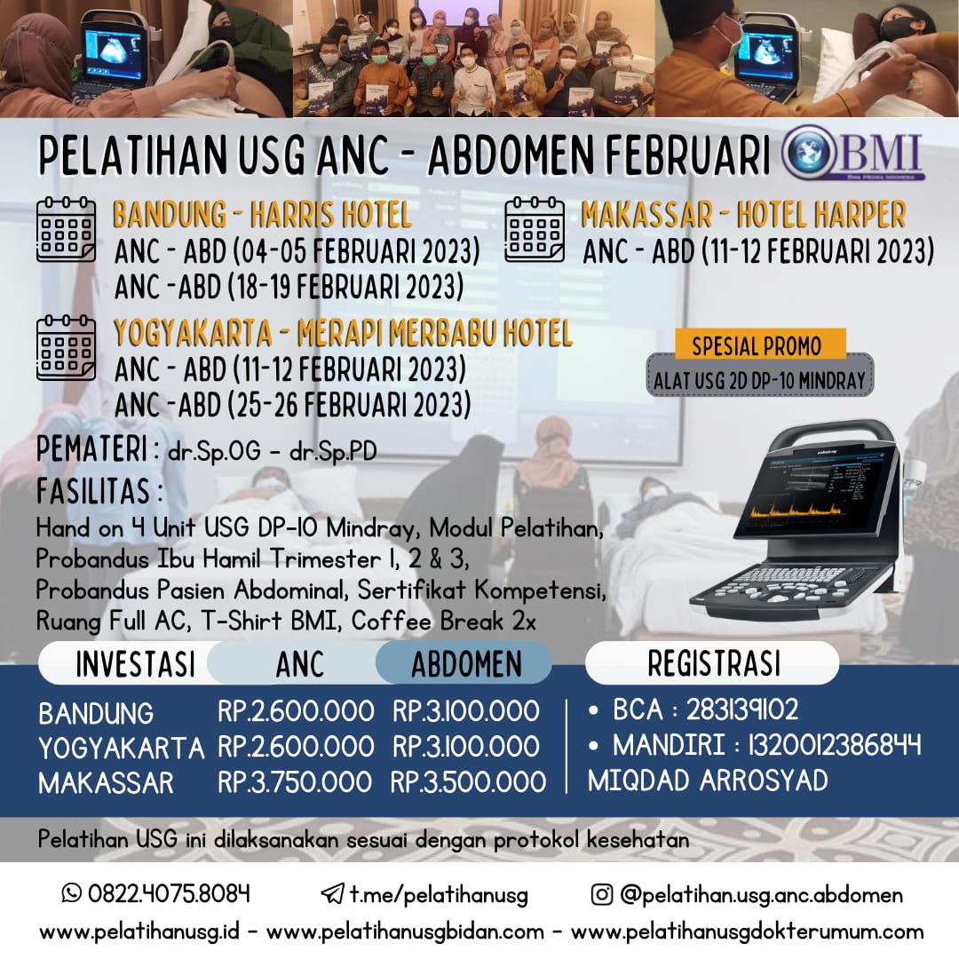 | Pelatihan USG ANC | 2.600.000 (Earlybird) | 2.600.000 (Reguler) |