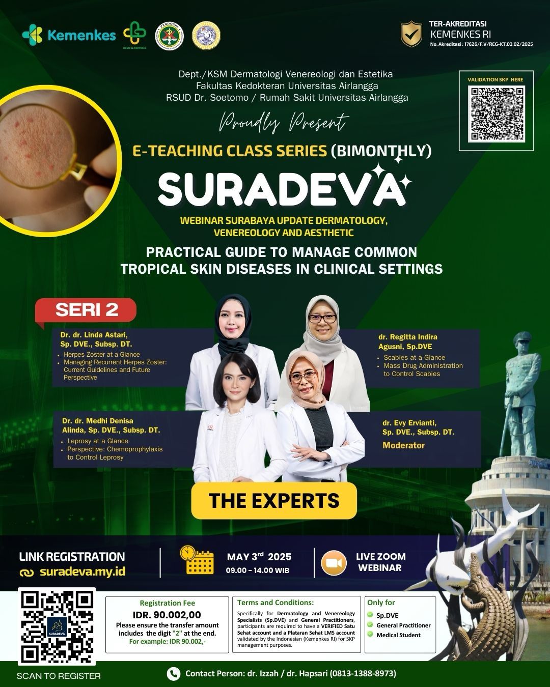Tertarik untuk mengikuti Webinar SURADEVA? Informasi lebih lanjut dapat hubungi kami melalui: +6281313888973 (dr. Izzah / dr. Hapsari)
