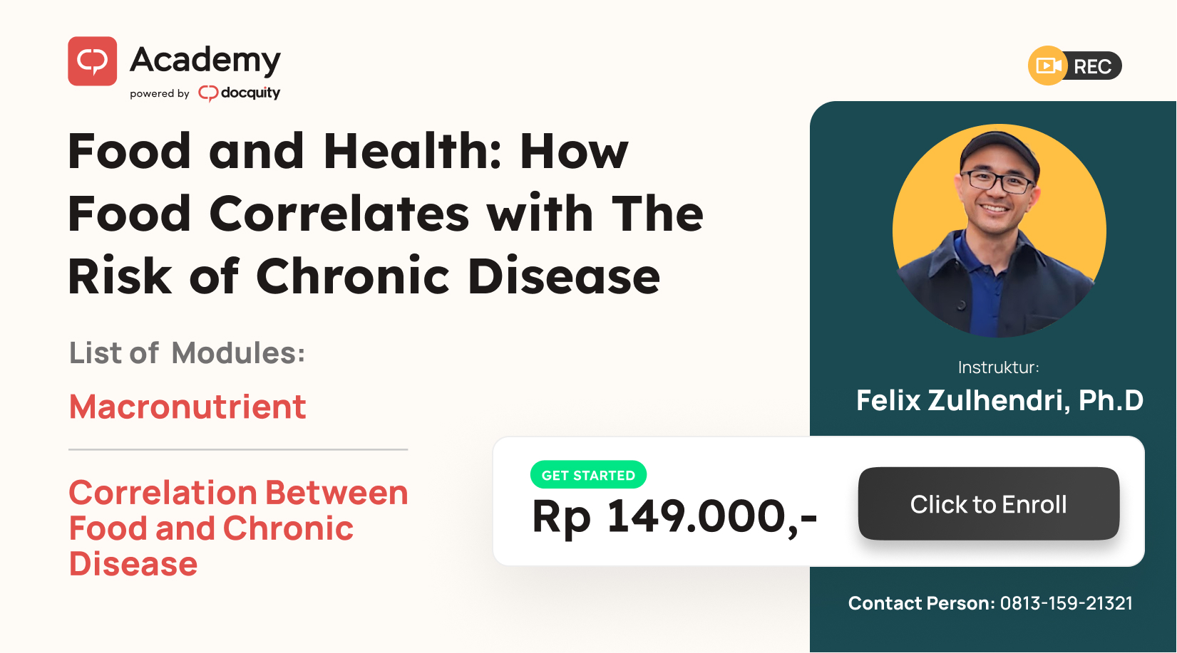 Pernah punya keluarga atau teman yang akhirnya menderita penyakit kronis seperti Diabetes, Stroke, Hipertensi karena pola makan yang sembarangan? Kini saatnya untuk meraih pemahaman mendalam dalam menangani situasi kritis ini untuk mencegah diri Anda dan orang-orang yang Anda sayangi terjebak dalam hal yang sama.