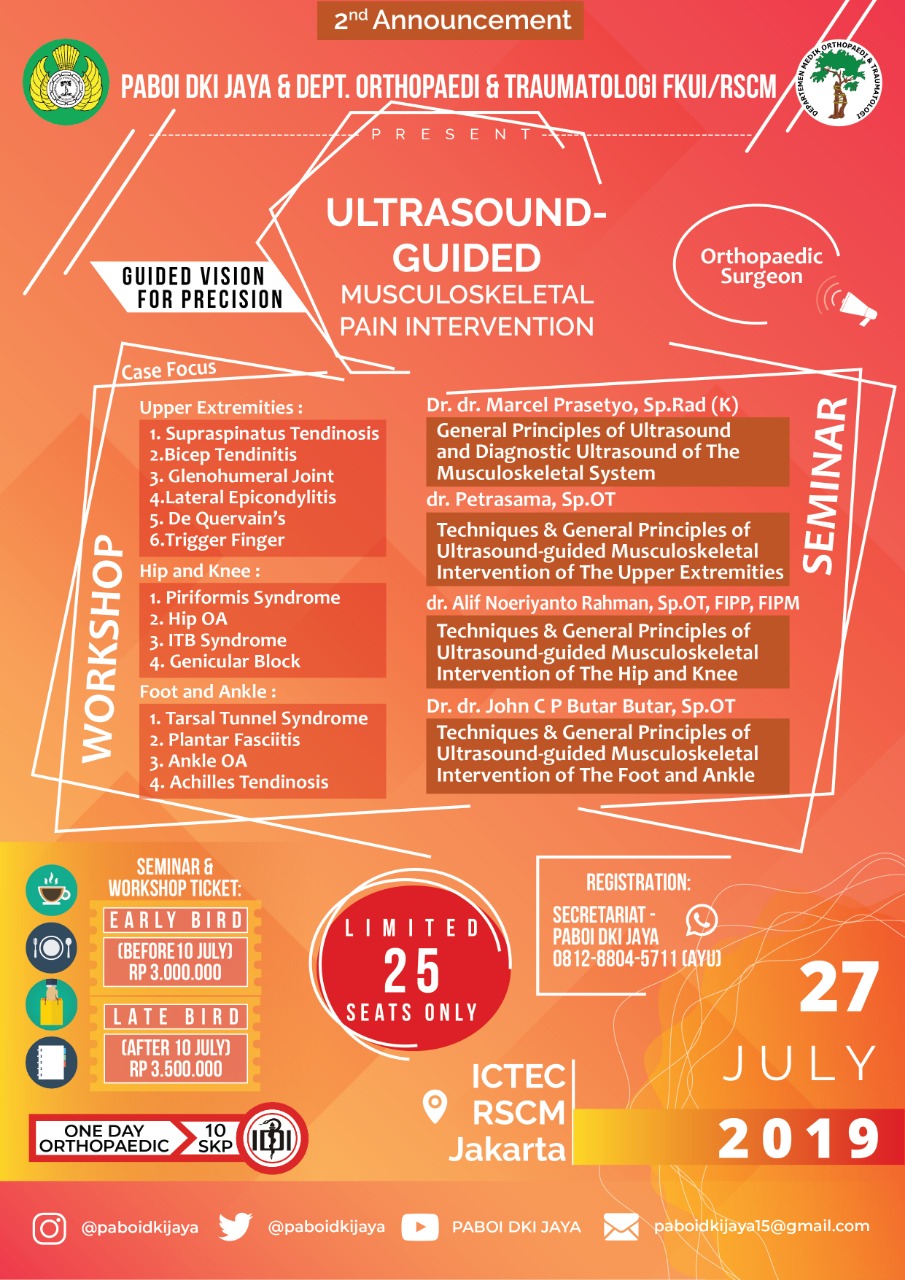 Diperlukan pengetahuan dan keterampilan yang memadai bagi spesialis Orthopaedi mengenai manajemen intervensi untuk mencapai penanganan yang tepat, komprehensif dan menghindari komplikasi dalam intervensi nyeri muskuloskeletal.
