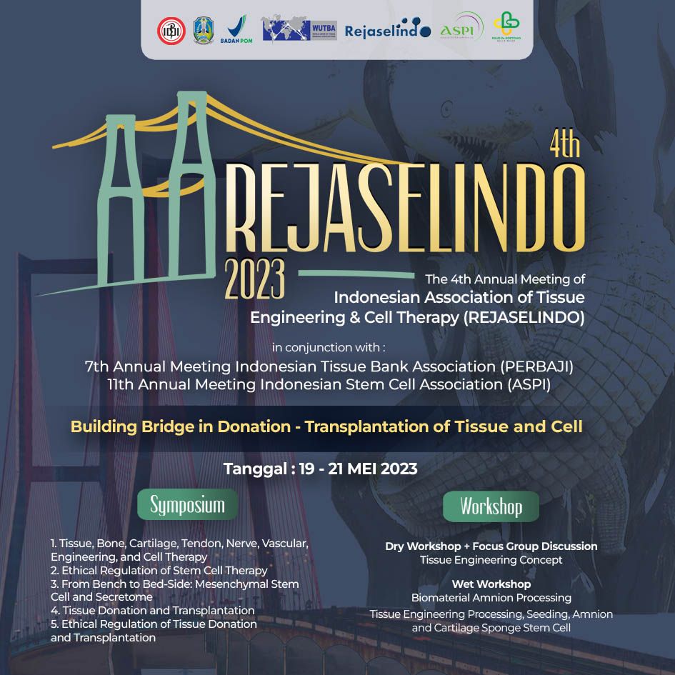 Proudly present to you Symposium and Workshop The 4th REJASELINDO 2023, "Building Bridge in Donation - Transplantation of Tissue and Cell".