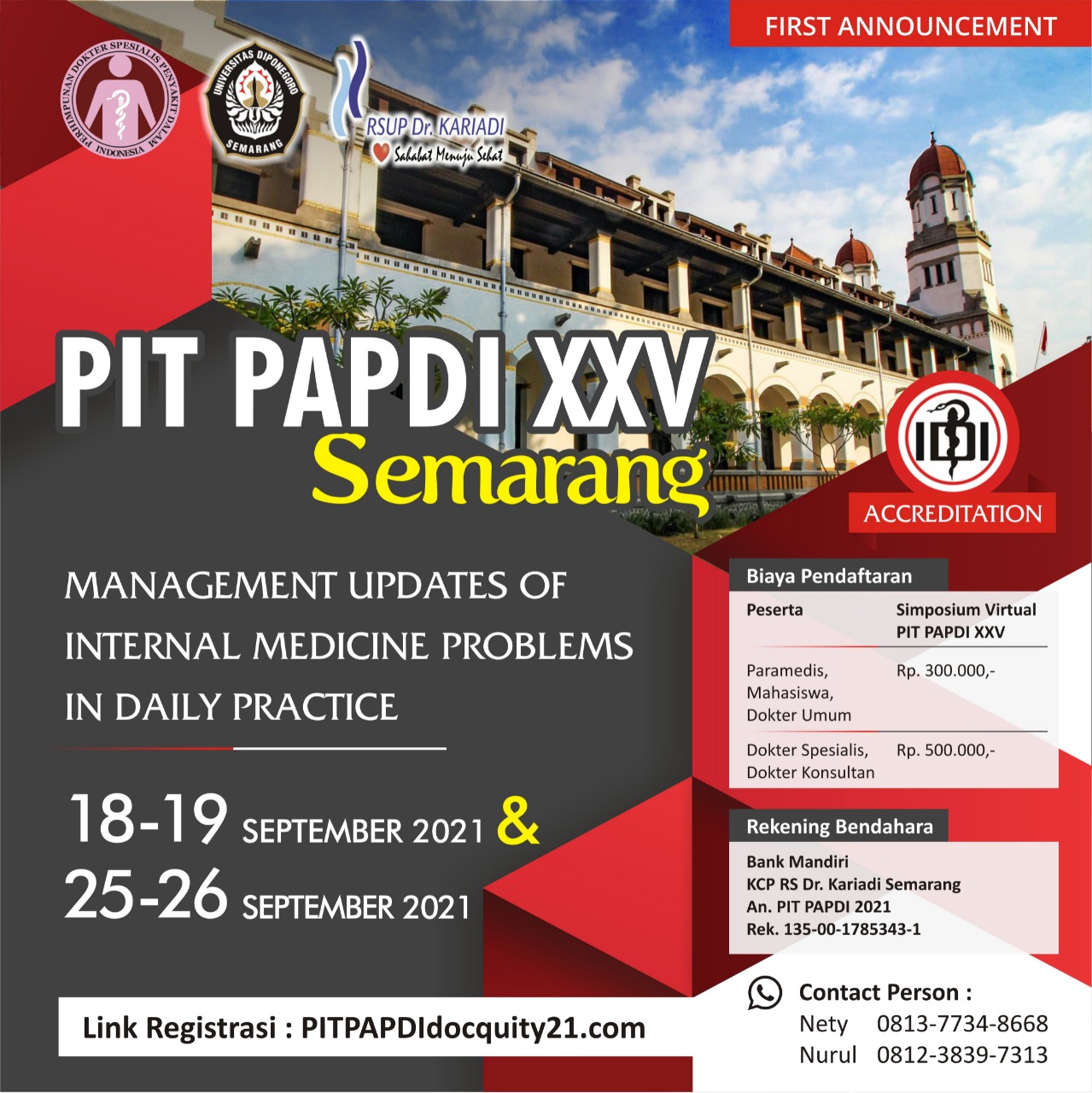 Acara Pertemuan Ilmiah Tahunan PAPDI Semarang tahun 2021 yang akan dilaksanakan pada tanggal 18-19 September - 25-26 September 2021