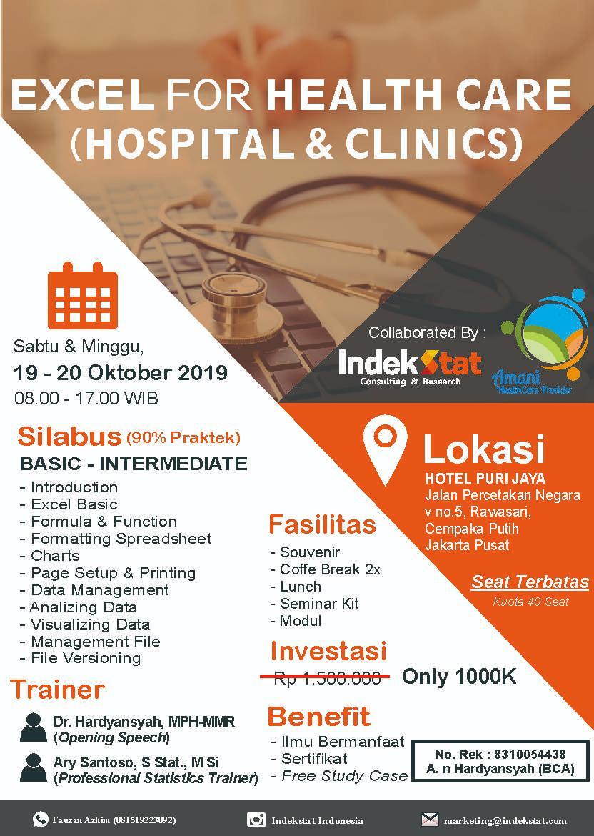 Mahir menggunakan excel utk membantu pekerjaan sehari-hari di bidang kesehatan baik di rumah sakit, klinik maupun asuransi.