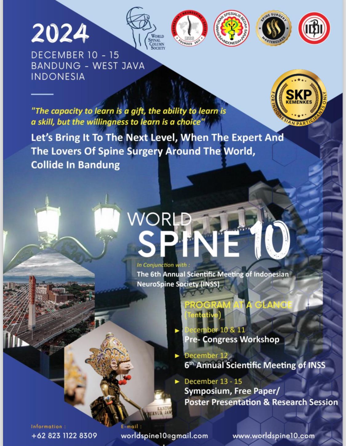 We cordially invite you to the highly anticipated World Spine 10 event, in conjunction with the 6th Annual Scientific Meeting of the Indonesian Neurospine Society (INSS)🎉
