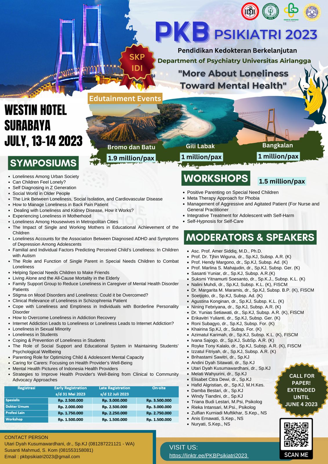 | Psikiater atau spesialis lainnya | 2.500.000 (Earlybird) | 3.000.000 (Reguler) |