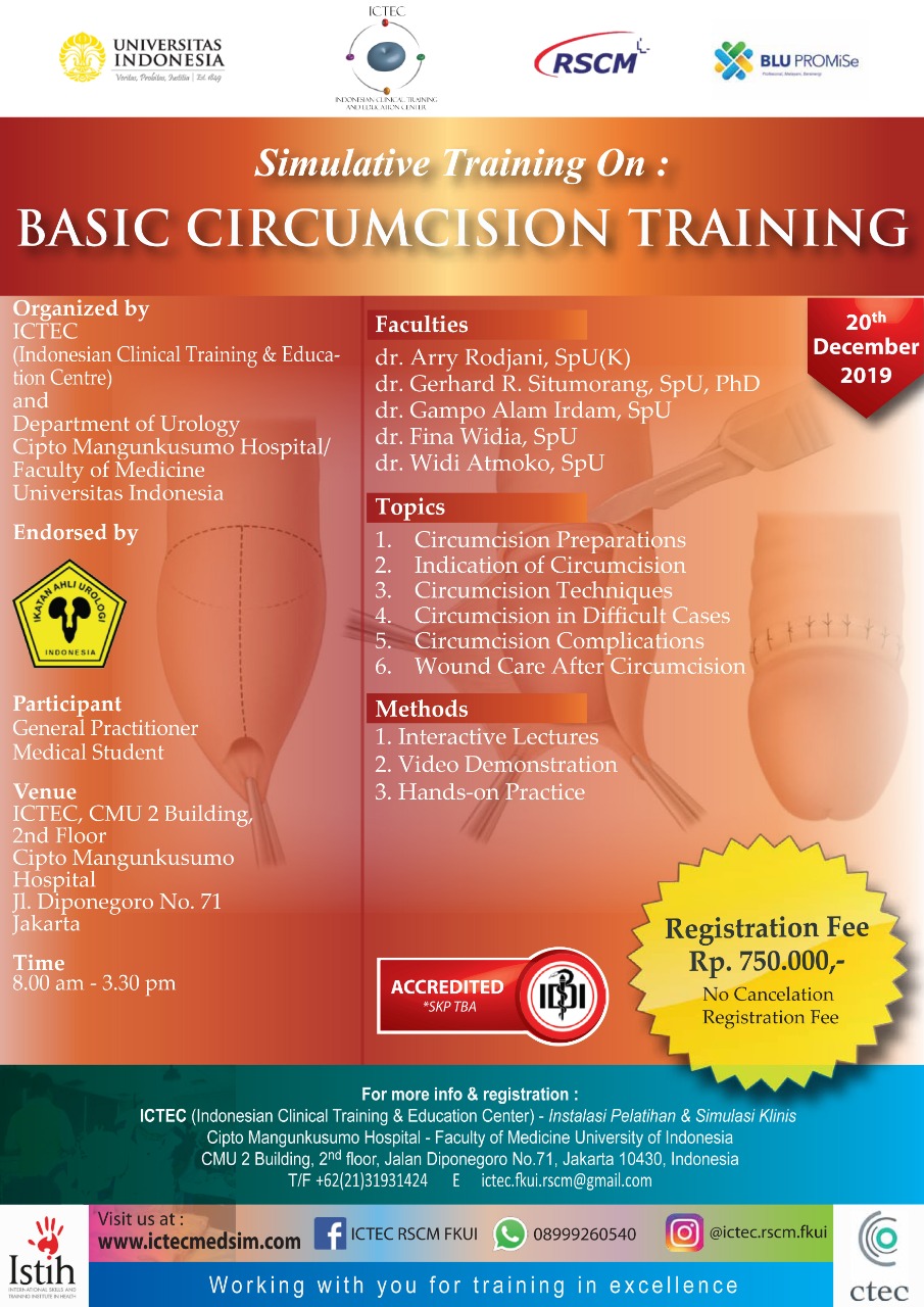 ICTEC- FKUI RSCM Bersama Departemen Urologi RSUPN Dr. Cipto Mangunkusumo mempersembahkan : Simulative Training On : Basic Circumcision Training