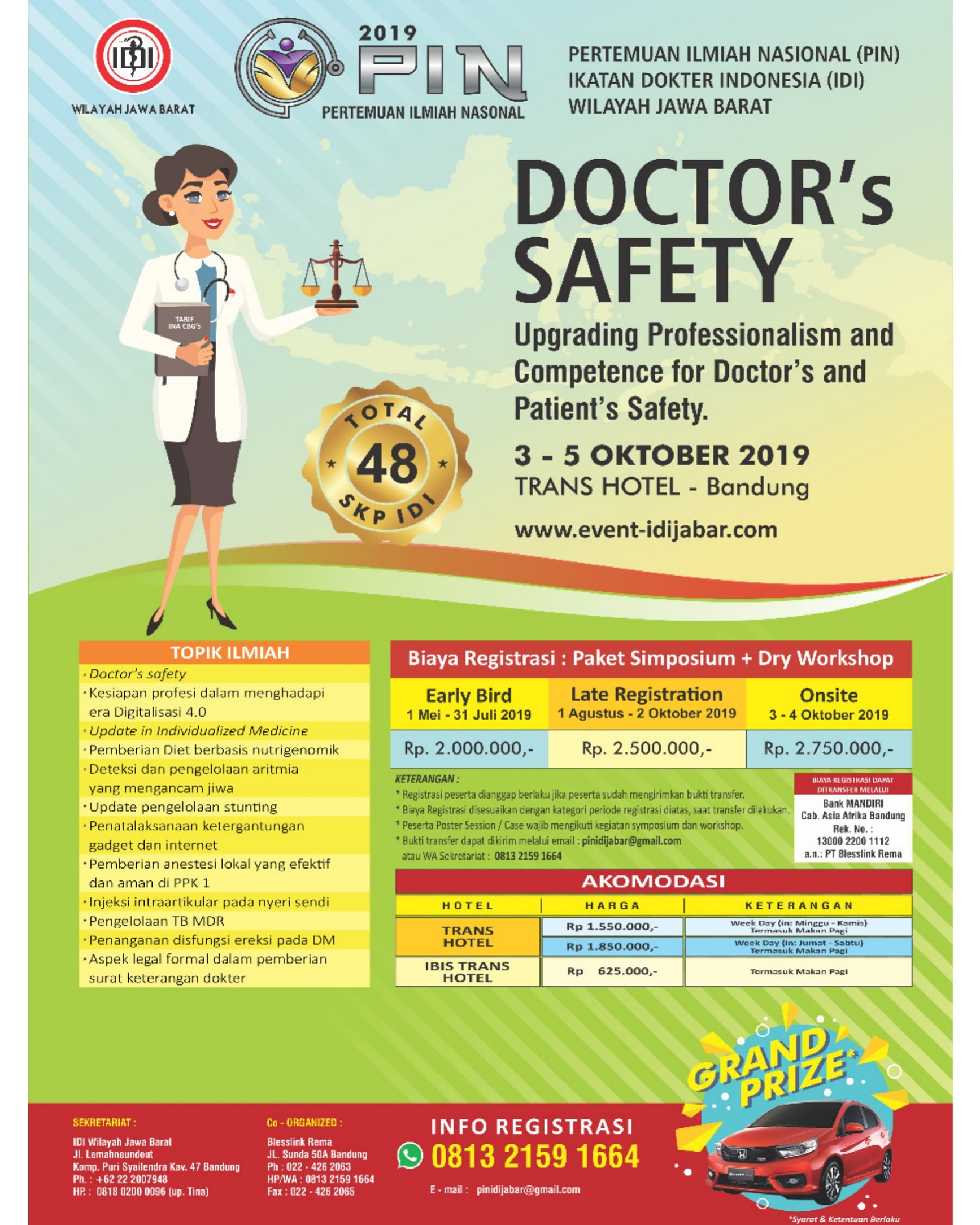 Pertemuan Ilmiah Nasional Ikatan Dokter Indonesia wilayah Jawa Barat 2019 mengedepankan pentingnya keamanan dan kenyamanan para dokter dalam menangani pasien dengan segenap hati dan ilmu yang dimiliki.