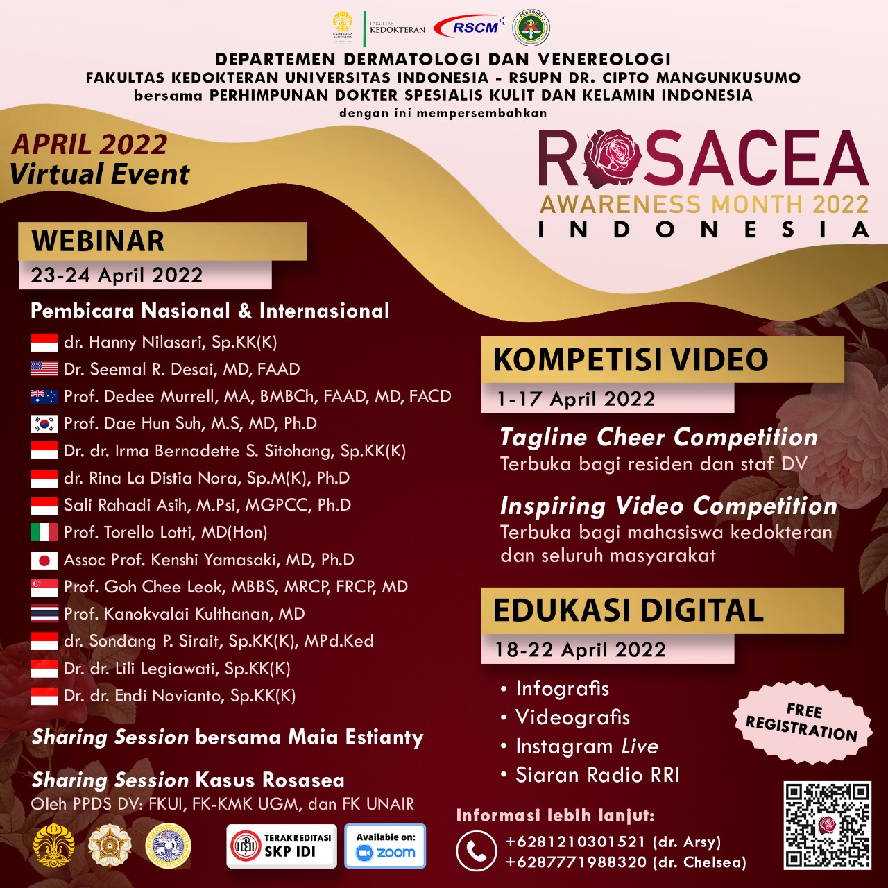 Dalam rangka memperingati Rosacea Awareness Month yang jatuh pada bulan April, Departemen Dermatologi & Venereologi FKUI-RSCM bersama PERDOSKI, dengan bangga mempersembahkan: