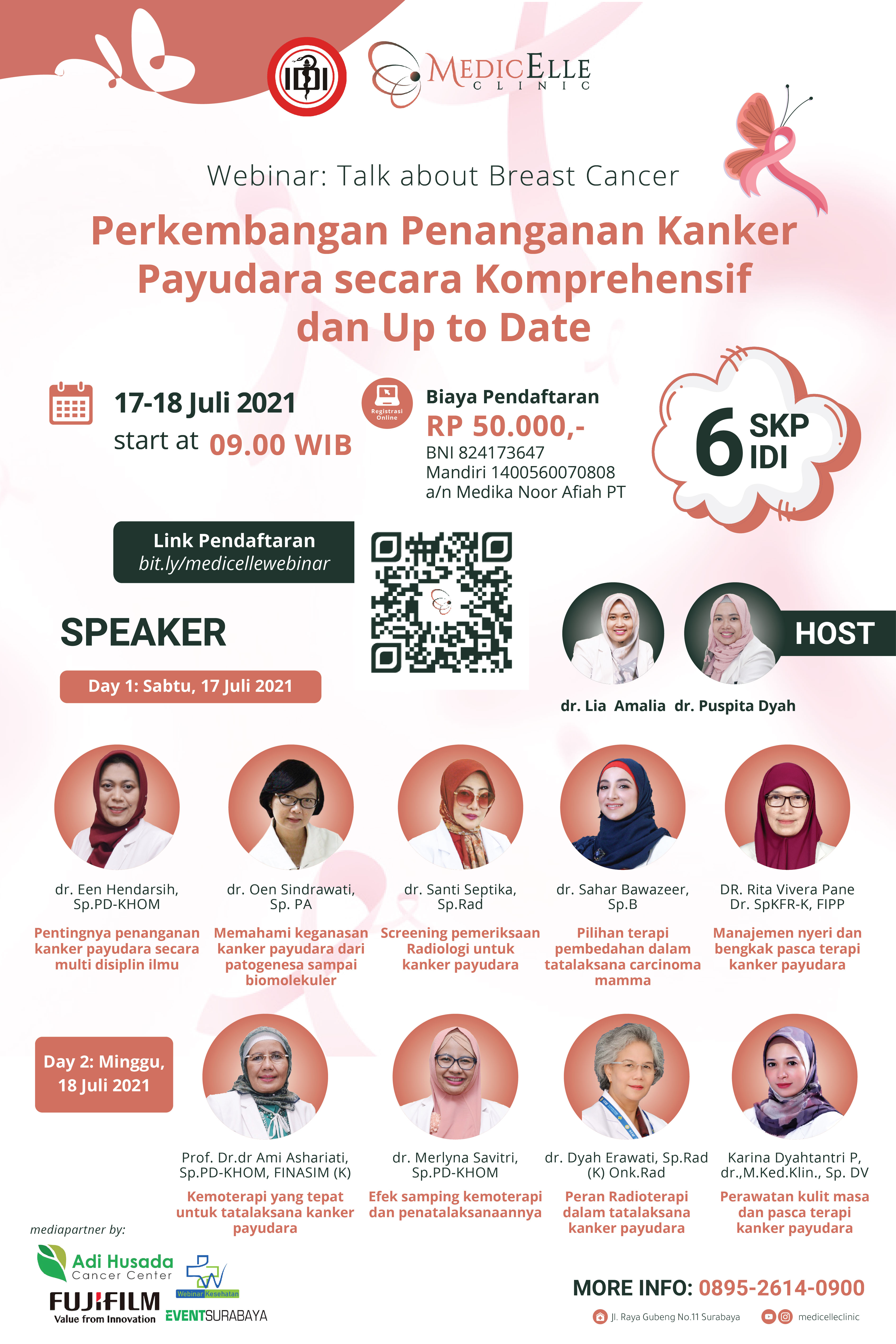 Dalam rangka menyebarkan awareness mengenai kanker payudara, MedicElle Clinic mengadakan Webinar & health talk dengan tajuk "Perkembangan Penanganan Kanker Payudara secara Komprehensif dan Up to Date" dengan narasumber yang ahli pada bidangnya masing-masing.