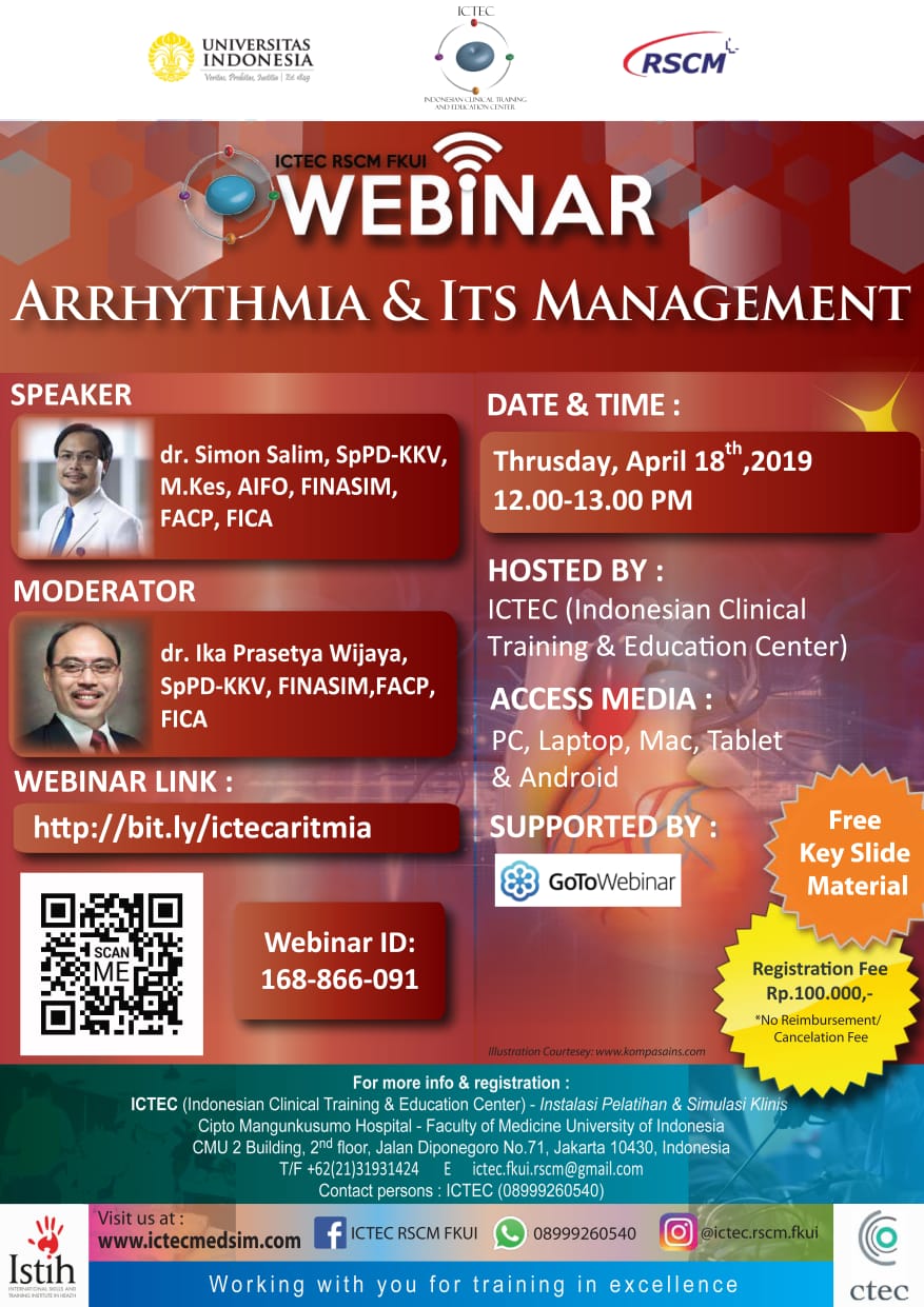Menjawab kegalauan mengenai Aritmia, ICTEC RSCM FKUI bekerjasama dengan Departemen Ilmu Penyakit Dalam RSCM FKUI mengadakan Webinar Dengan Tema :