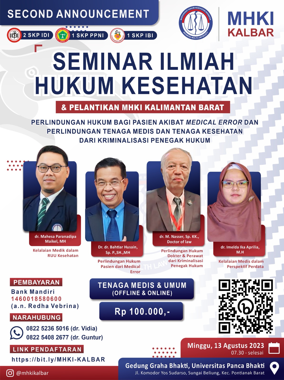 2. Mengisi form pendaftaran dan mengupload bukti pembayaran ke : https://bit.ly/MHKI-KALBAR