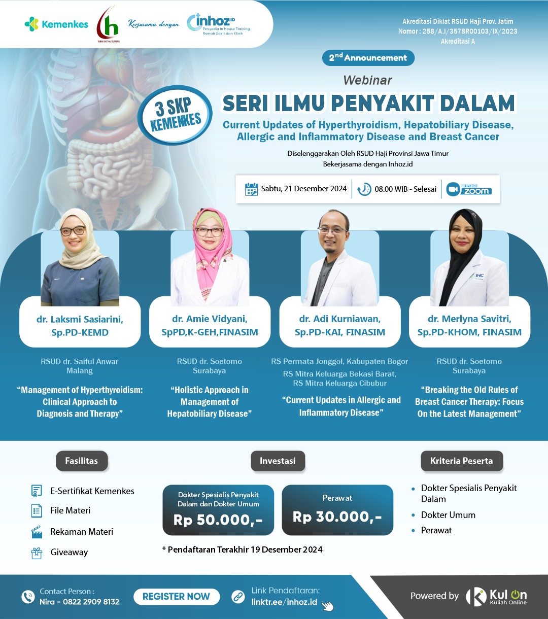 ✨Webinar Seri Ilmu Penyakit Dalam - Current Updates of Hyperthyroidism, Hepatobiliary Disease, Allergic and Inflammatory Disease and Breast Cancer✨