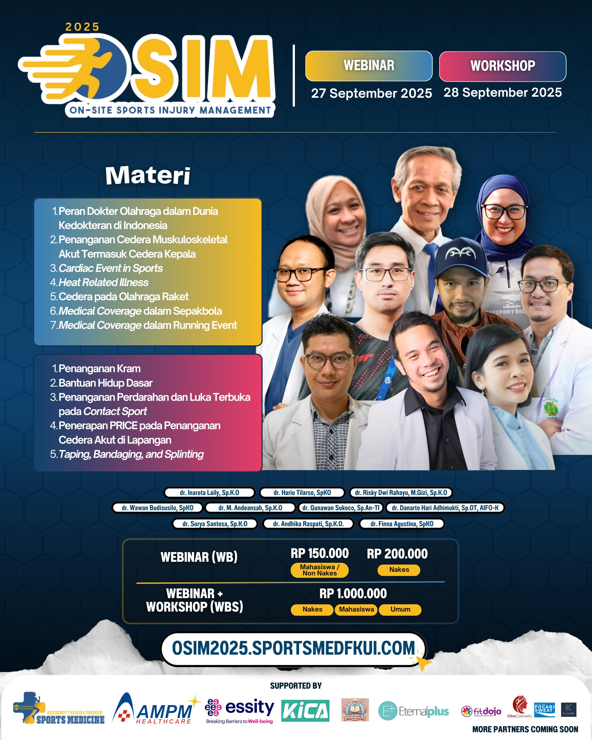 Materi disampaikan langsung oleh dokter spesialis kedokteran olahraga, dokter spesialis ortopedi, dan dokter spesialis anestesi. Kamu juga akan mendapatkan sertifikat, pengalaman langsung, dan relasi profesional!