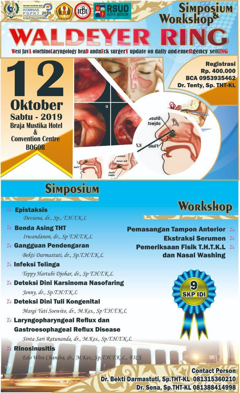 PERHATI-KL Cabang Jawa Barat siap turut serta dalam pencapaian update keilmuan dan peningkatan skill para GP dengan mempersembahkan Seminar dan Workshop WALDEYER RING (West Java Otorhinolaryngology Head & Neck Surgery Update in Daily & Emergency Setting), yang akan berlangsung:
