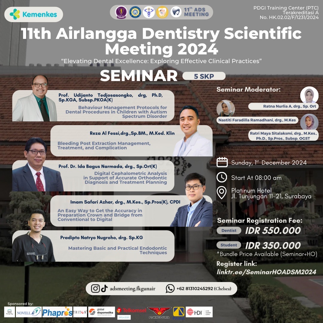 Faculty of Dental Medicine Universitas Airlangga proudly presents Seminar with the theme “Elevating Dental Excellence: Exploring Effective Clinical Practices”