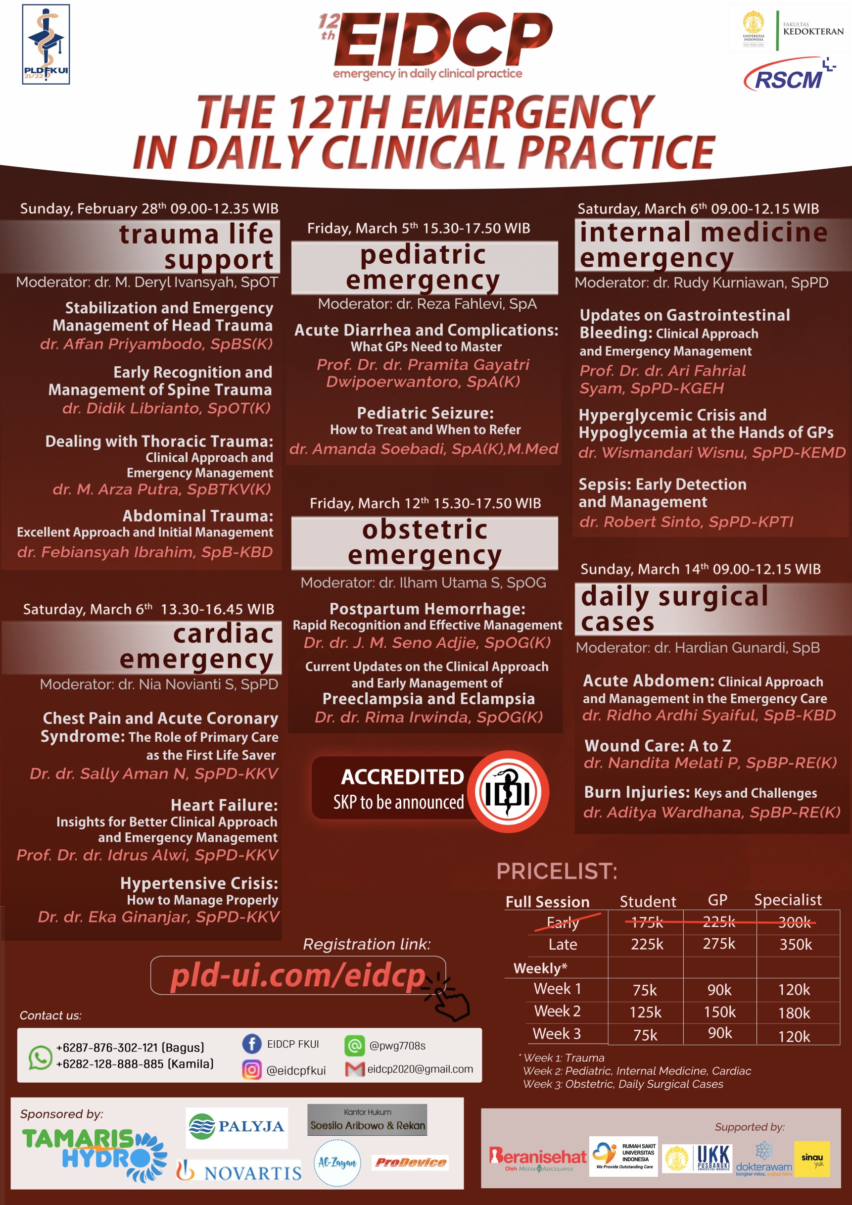 Panitia Pelantikan Lulusan Dokter FKUI 2021/2022 dengan bangga mempersembahkan The 12th EIDCP Main Event Webinar yang berkolaborasi dengan FKUI-RSCM.