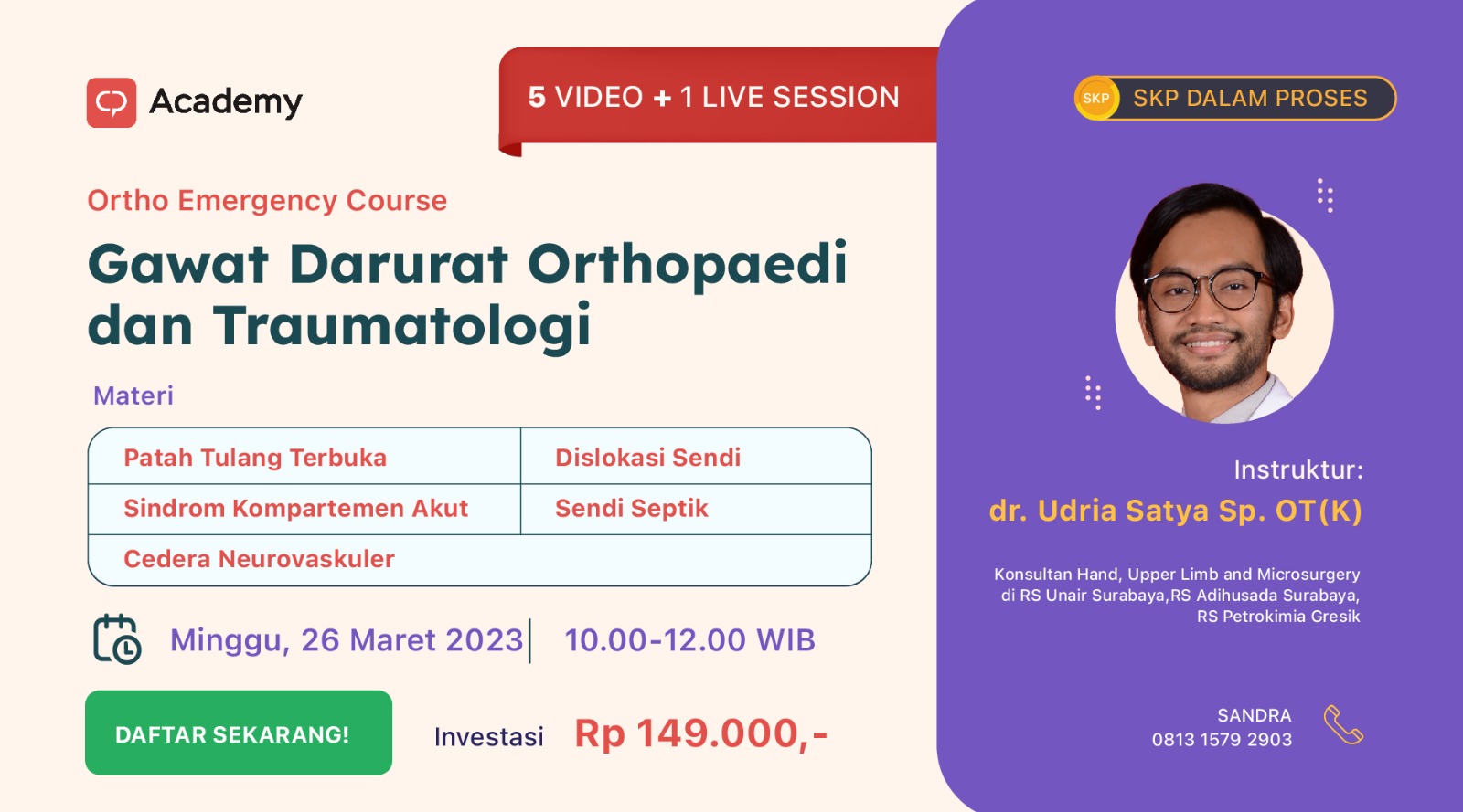 Ikuti kelas online interaktif ""Gawat Darurat Orthopedi dan Traumatologi"" bersama dr. Udria Satya, Sp.OT(K).