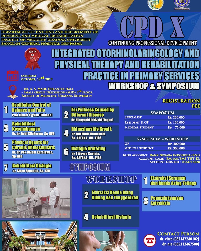 SMF THT KL RSUP Sanglah bekerjasama dgn SMF Rehabilitasi Medik RSUP sanglah mengadakan seminar dan workshop internasional dengan topik
