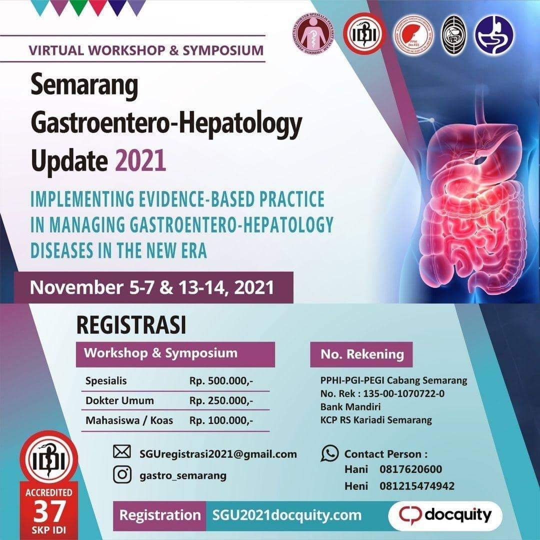 Bersama ini kami mengundang Prof/Dr/dr untuk berpartisipasi pada acara Virtual Workshop dan Symposium ”Semarang Gastroentero-Hepatology Update 2021"
