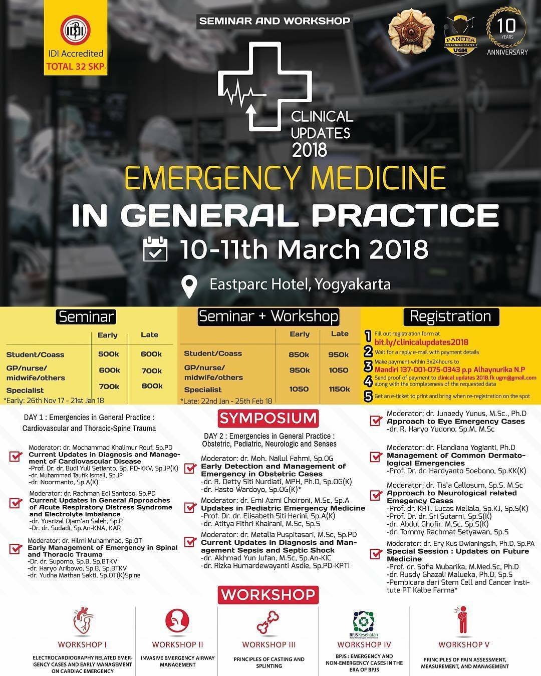 📣 Panitia Pelantikan Dokter UGM 2012 mempersembahkan: Clinical Updates 2018: Emergency Medicine in General Practice.