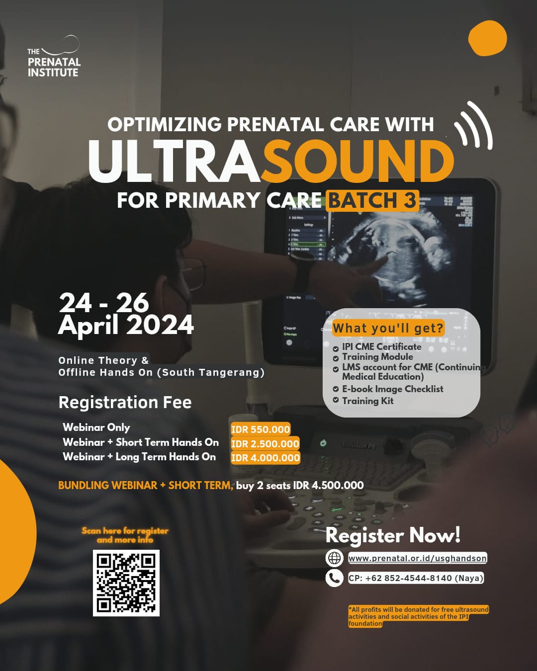 • Webinar + Short Term Hands-on : 2.500.000 (Hari 1 : webinar, Hari 2-3 : praktik USG)