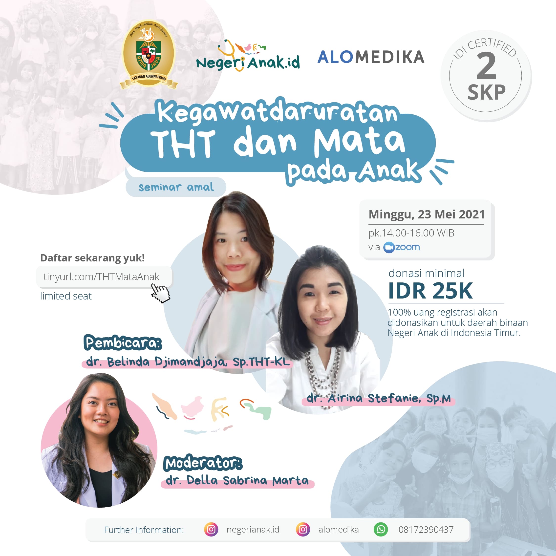 Negeri Anak bersama Alomedika mengadakan seminar amal dengan topik "KEGAWATDARURATAN THT DAN MATA PADA ANAK"