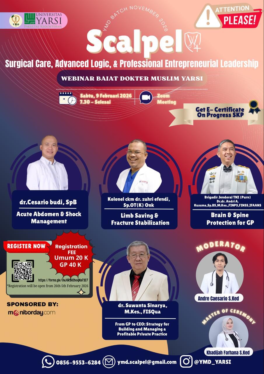 Dalam Rangka Sumpah Dokter, Fakultas Kedokteran Universitas YARSI Dengan Bangga Mempersembahkan Sebuah Webminar Inspiratif Bertajuk: SCALPEL